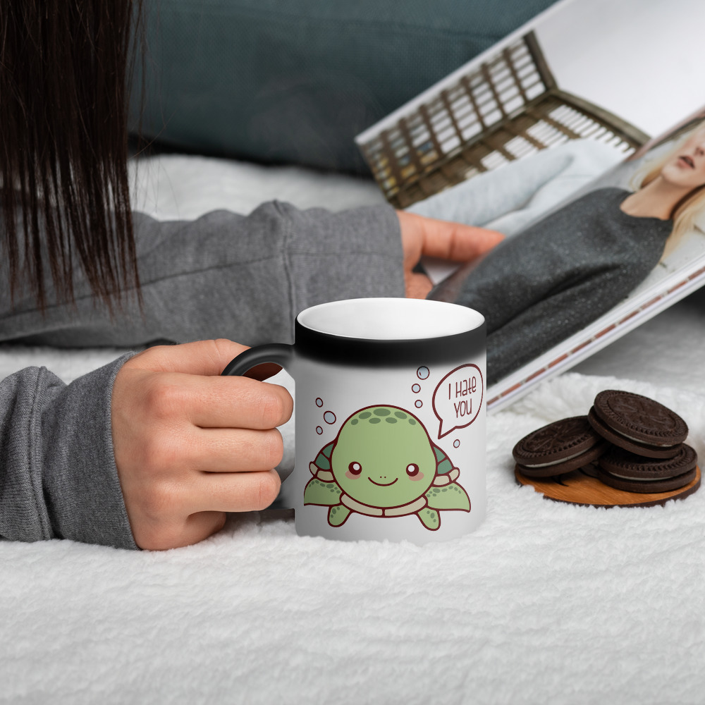 Have you ever seen coffee mugs this cute?! All three of these Cuties look so playful while telling us they hate us! The winking kitty, blushing whale, and bubbly sea turtle are all the perfect embodiment of adorable!